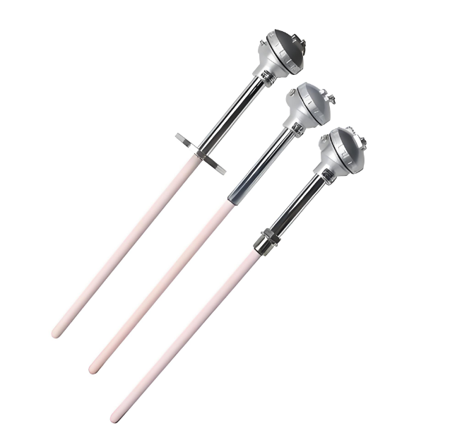 WRe3-WRe25,WRe5-WRe26抗氧化钨铼8868体育官网入口,理想测温范围为0~1500℃,其结构为双层或三层(不常用)保护管,双保护管结构的外保护管为特纯刚玉管,内保护管为硅化钼管,三套管的外保护管为再结晶碳化硅管或特纯刚玉管,中间管与内保护管与双层管式相同,管内填充物为高温绝缘材料(可在1800℃以下长期使用),抽真空后再冷端密封(密封胶可在300℃以下长期使用),确保管内无残氧,该产品适用于真空,还原等惰性气体中使用(0~1650℃),氧化气氛中理想测温为0~1500℃。